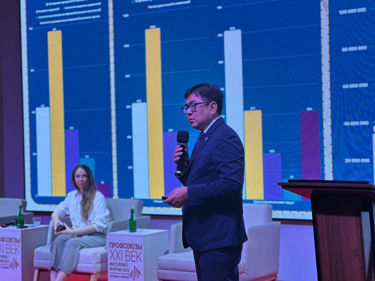 На площадке «Мир» выступил председатель Федерации профессиональных союзов Кыргызстана Мурадил Джумадилде уулу. Он рассказал об опыте глубокого реформирования ФПСК. После избрания на пост председателя в феврале 2024 года он обновил команду специалистов профцентра и начал активно внедрять в работу новые инструменты, в том числе цифровые механики получения и аналитики данных о профсоюзном членстве, сбора и обработки запросов членов профсоюзов.