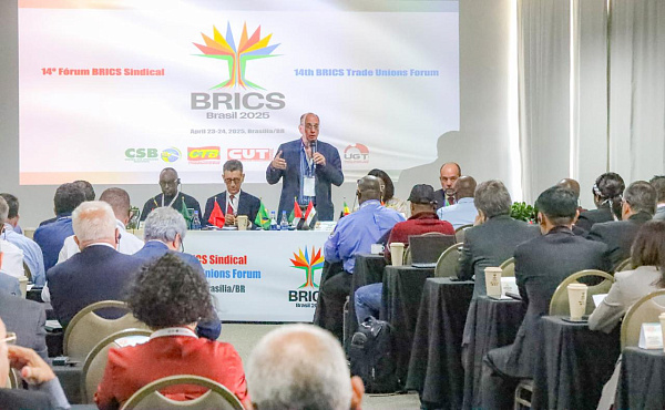 «Союз BRICS — это материализация борьбы рабочего класса в эпоху глобализации. Это конкретные действия, которые ломают географические, языковые и культурные границы для содействия международной солидарности. И если координация будет осуществляться в то время, когда Бразилия готовится принять COP 30 в Белене, первую климатическую конференцию, проводимую в лесах Амазонки, то это будет символично и стратегически важно. Это знак того, что Бразилия хочет возглавить новую эру для планеты и для трудящихся!» - сказал, открывая форум, Лоренсу Феррейра ду Праду, секретарь по международным связям UGT.