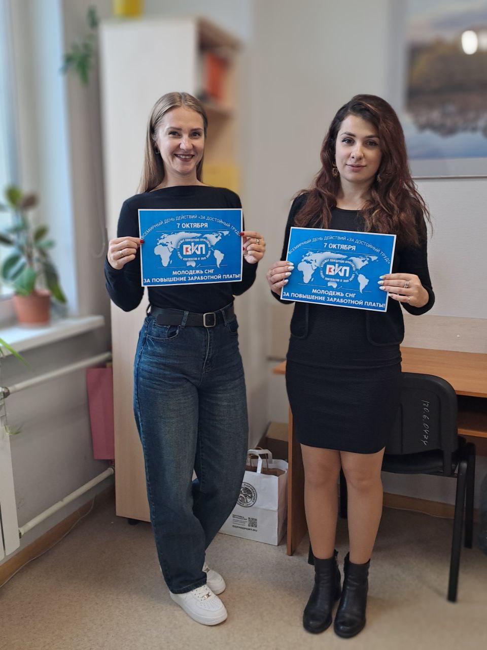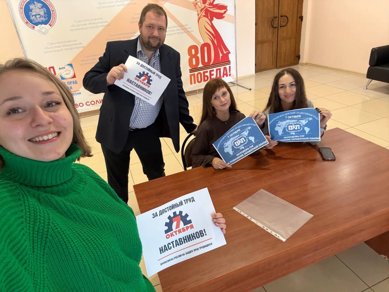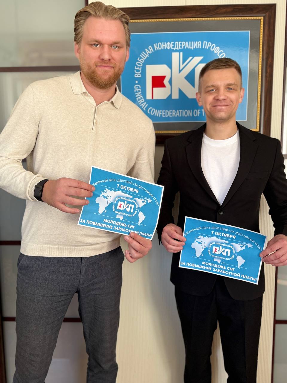 Активисты молодёжных советов Всеобщей конфедерации профсоюзов и членских организаций ВКП провели акцию под лозунгом «Молодёжь СНГ – за повышение зарплаты!». На страницах профлидеров и в профсоюзных сообществах размещены материалы с лозунгом и фотографии участников медиакампании. Участники акции использовали хэштеги: #7октября #МСВКП #ВКП #ЗаПовышениеЗарплаты #ЗаДостойныйТруд #МолодежьВКП #профсоюз #профсоюзы #WorldDecentWorkDay #WorkDay #GCTU #CGS #TradeUnions.