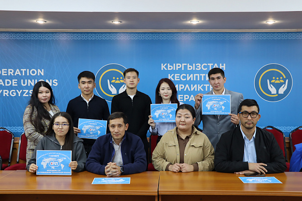 Молодёжный совет Федерации профессиональных союзов Кыргызстана поддержал инициативу Всеобщей конфедерации профсоюзов (ВКП) и провёл акцию в поддержку Всемирного дня за достойный труд. Молодые профактивисты Кыргызстана поддержали акцию дополнительным лозунгом — «Достойный труд — справедливая оплата: работающий человек не должен быть бедным!».