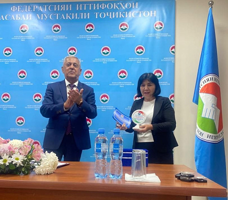 На мероприятии состоялась церемония награждения профсоюзного актива. Победителям конкурса «Лучшая первичная профсоюзная организация» председатель Федерации независимых профсоюзов Таджикистана вручил памятные мраморные стелы.