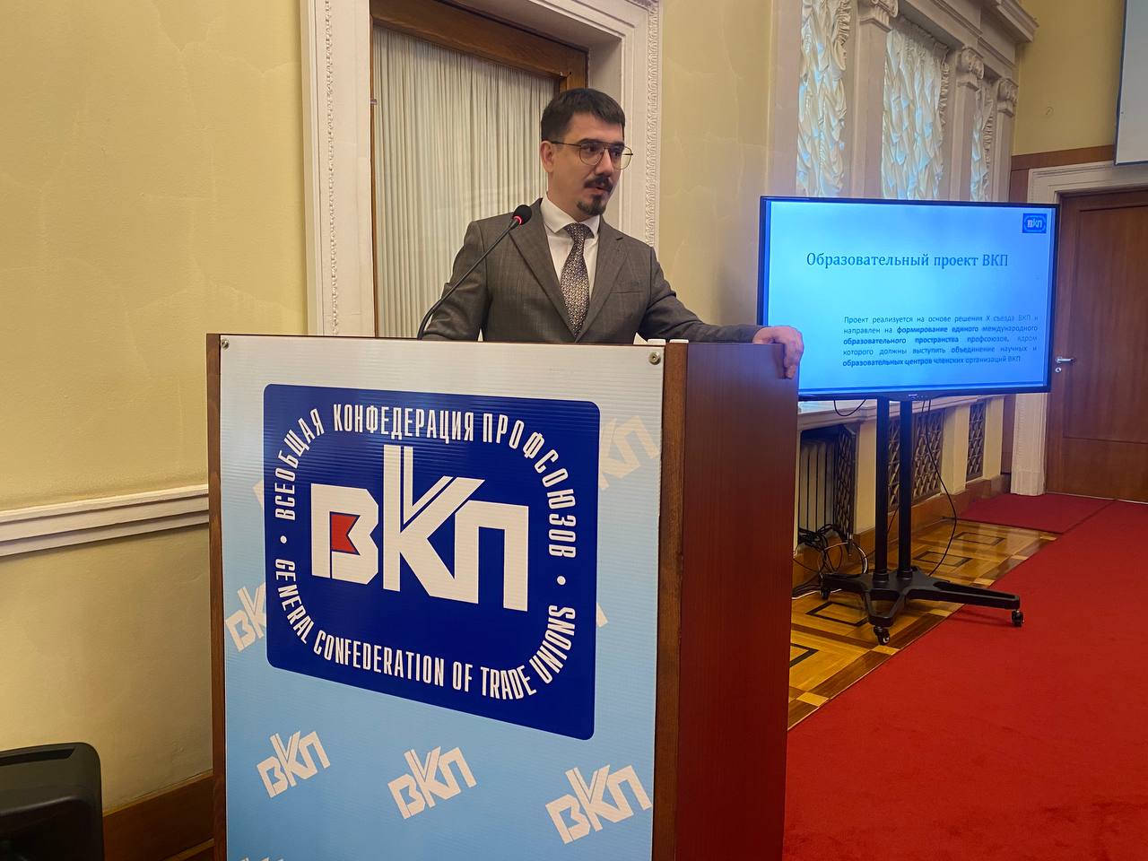 Об изменениях в информационной политике конфедерации и её развитии рассказал руководитель пресс-службы ВКП, и.о. руководителя департамента ВКП по работе с членскими организациями и профсоюзами мира Александр Кляшторин.
