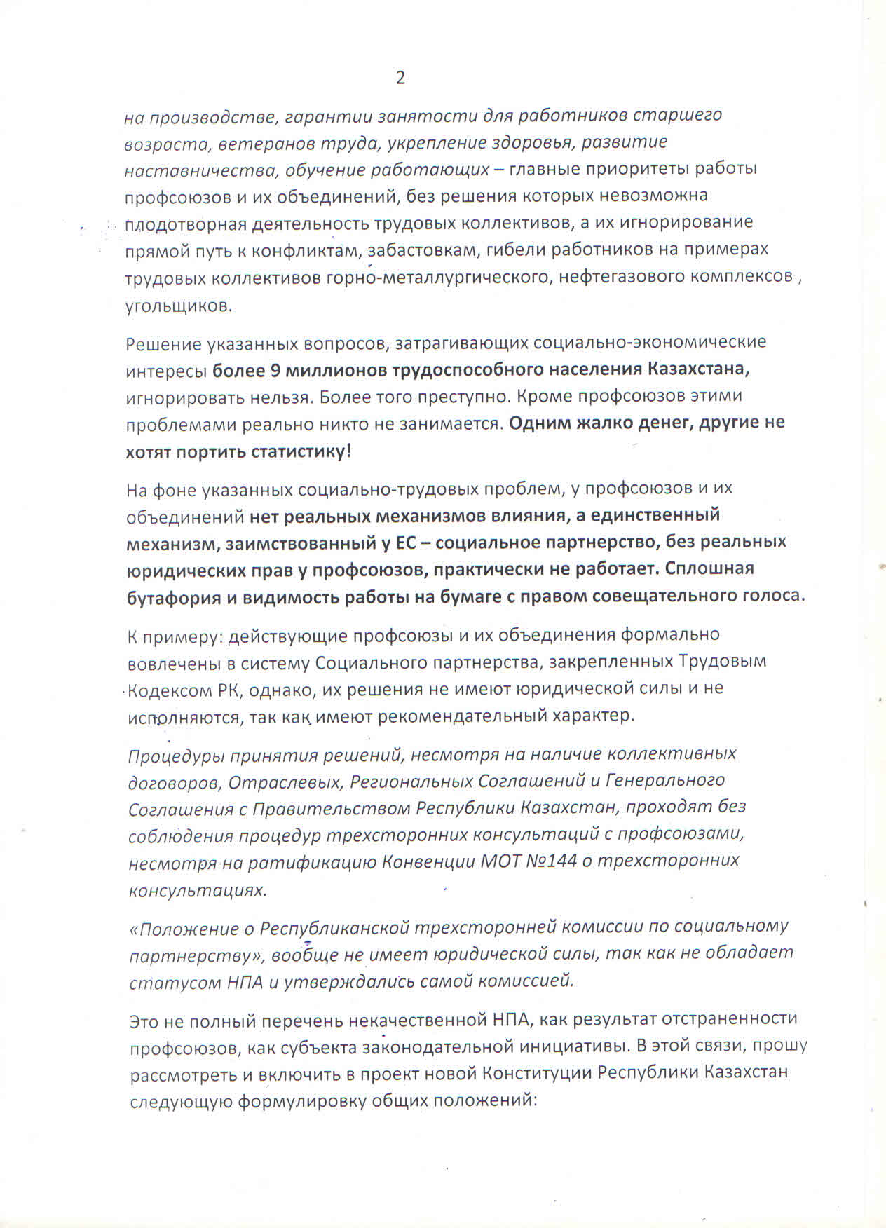 Внести в Конституцию Казахстана право законодательной инициативы для профсоюзов предложила Казахстанская конфедерация труда