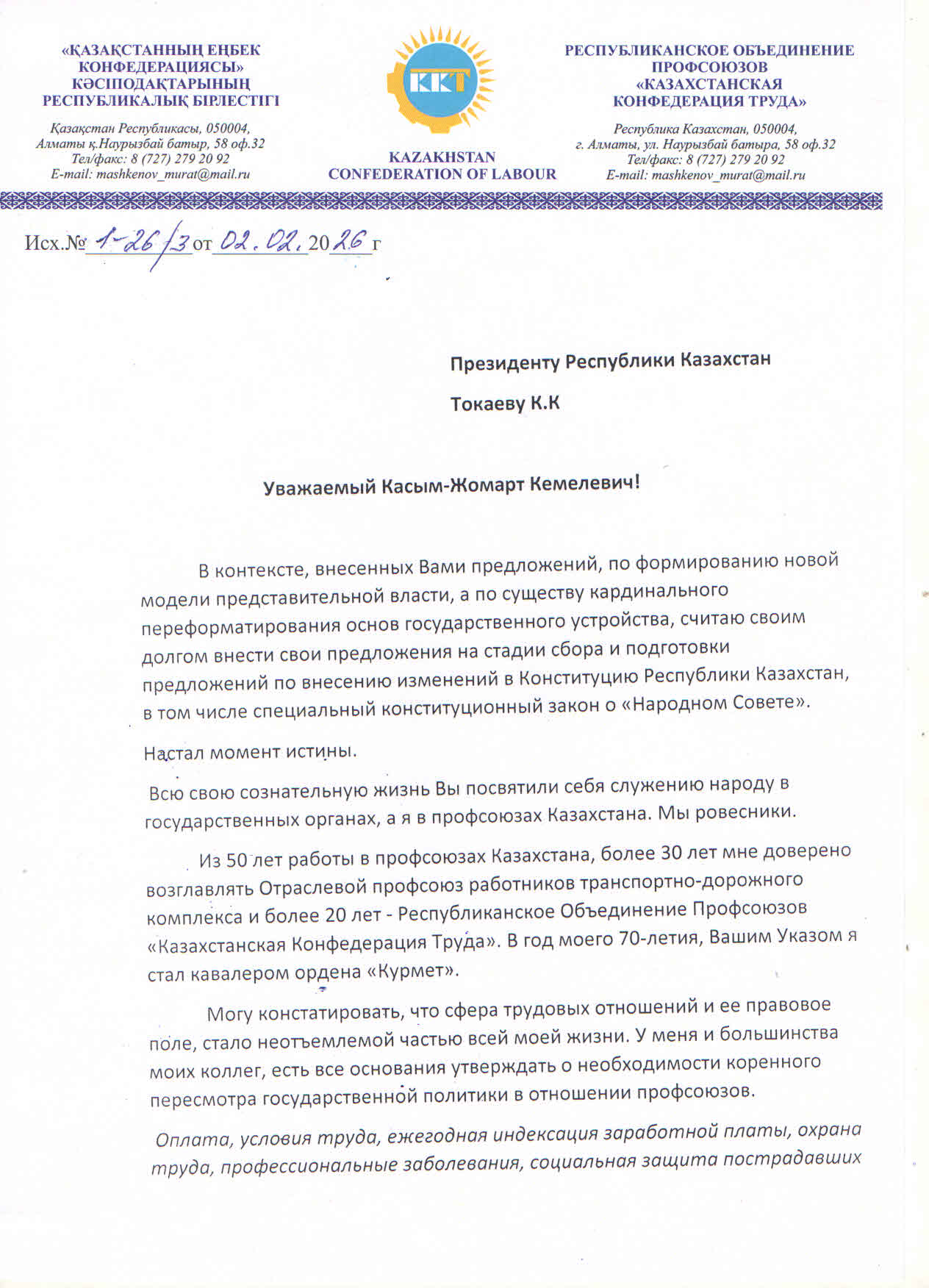 По мнению генерального секретаря ККТ, такой подход позволит гражданам через профессиональные союзы и их объединения вносить законопроекты в Парламент Республики Казахстан. Таким образом, профсоюзы смогут выступать коллективными инициаторами и разработчиками законодательных актов. Реализация этой инициативы, как отмечает Мурат Машкенов, повысит общественную легитимность профсоюзов, станет дополнительным инструментом мотивации членства и усилит роль социального партнёрства в стране.